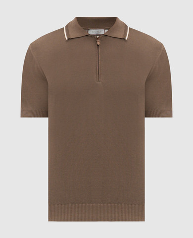 Бежевое поло с льном с логотипом