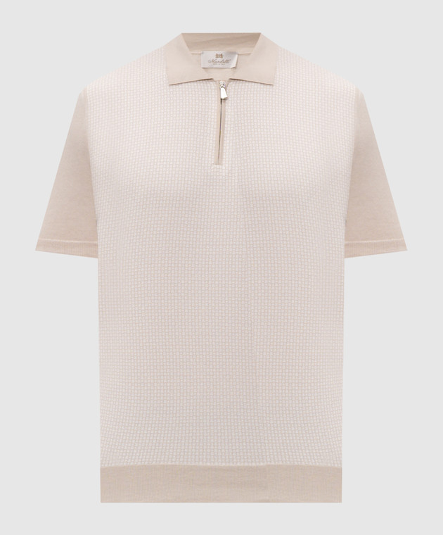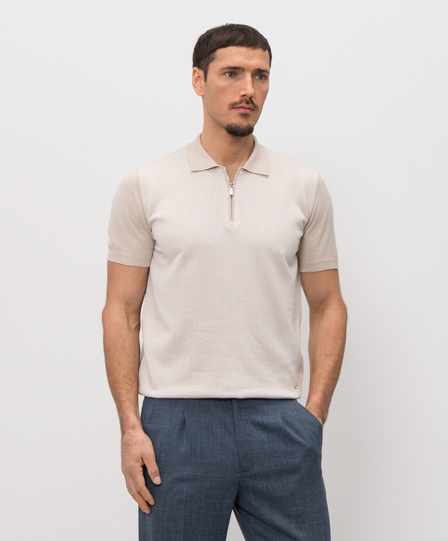 Бежевое поло с шелком в узор