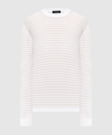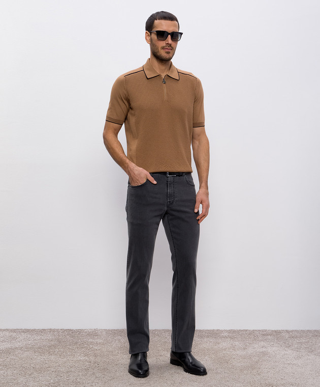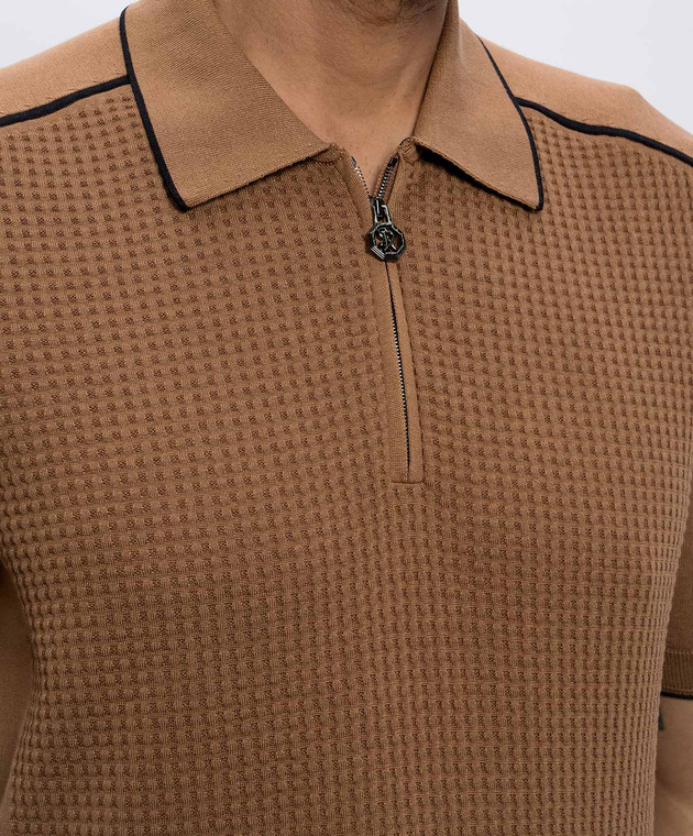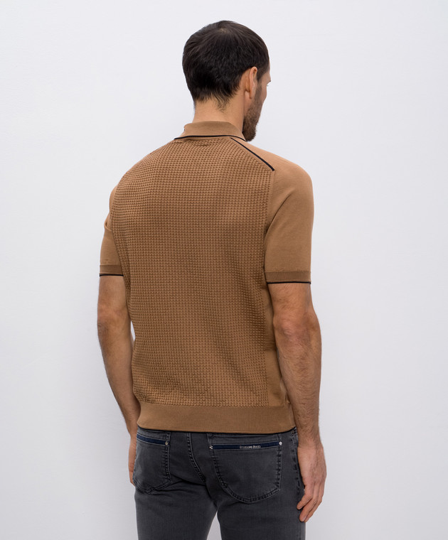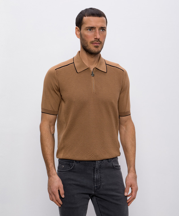 Бежевое поло с шелком в узор с логотипом монограмма