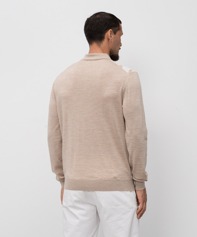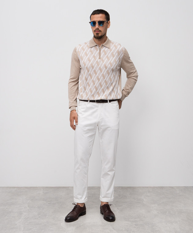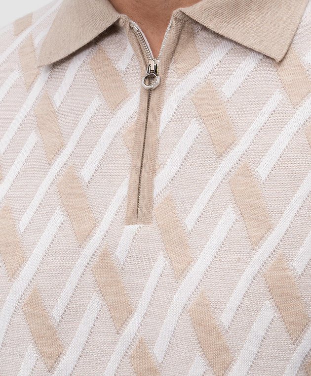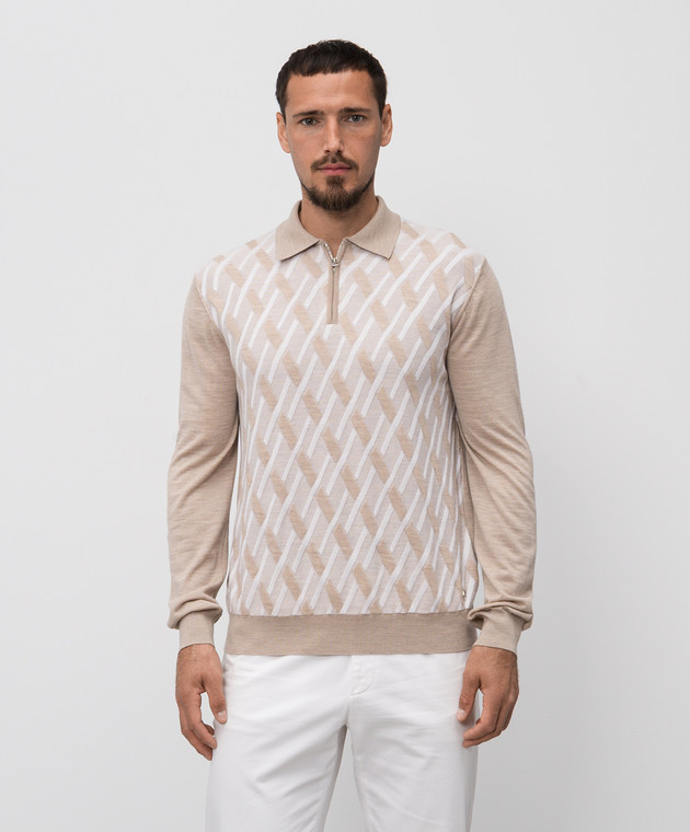 Бежевое поло с шерсти, кашемира и шелка в геометрический узор