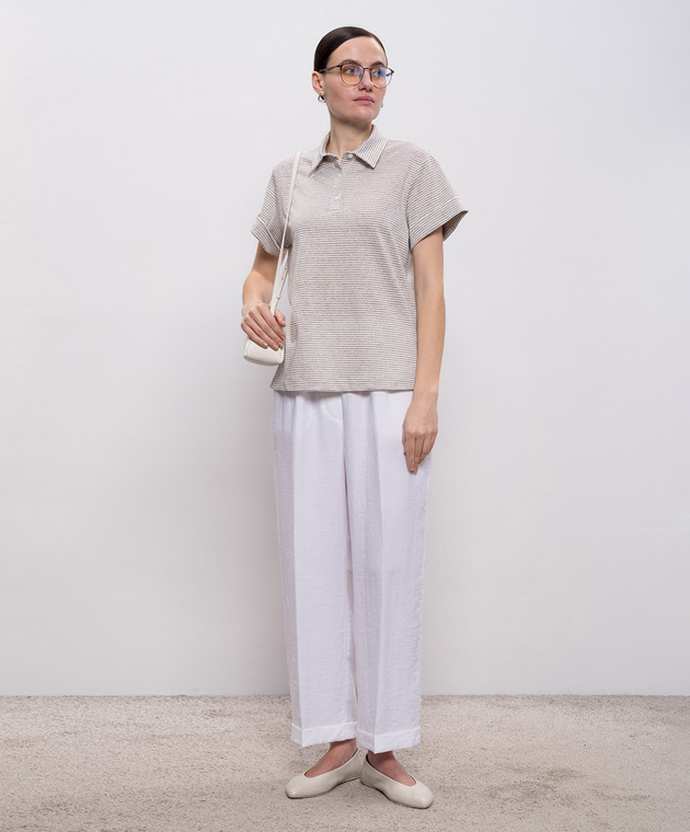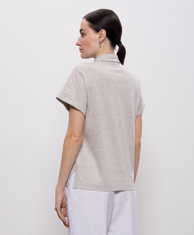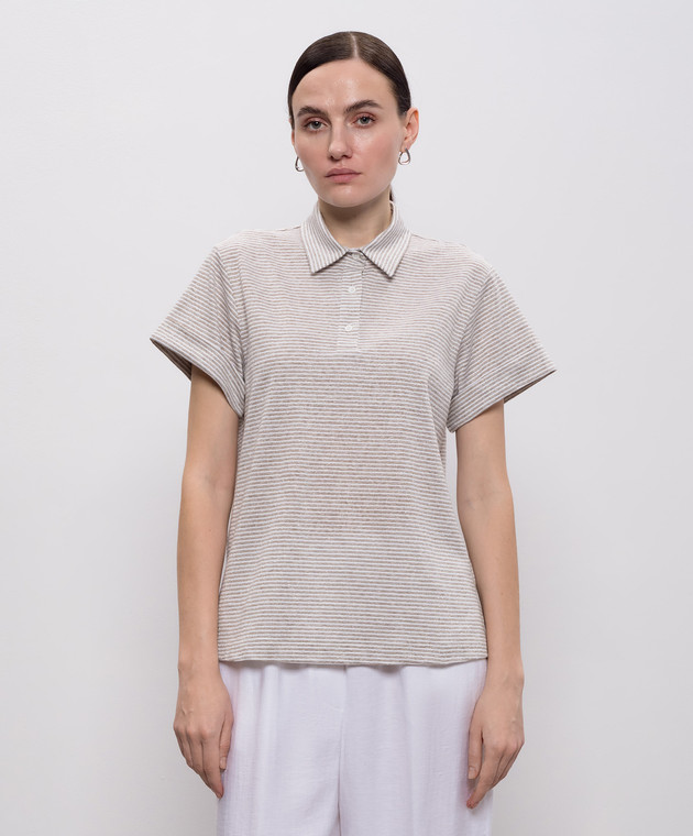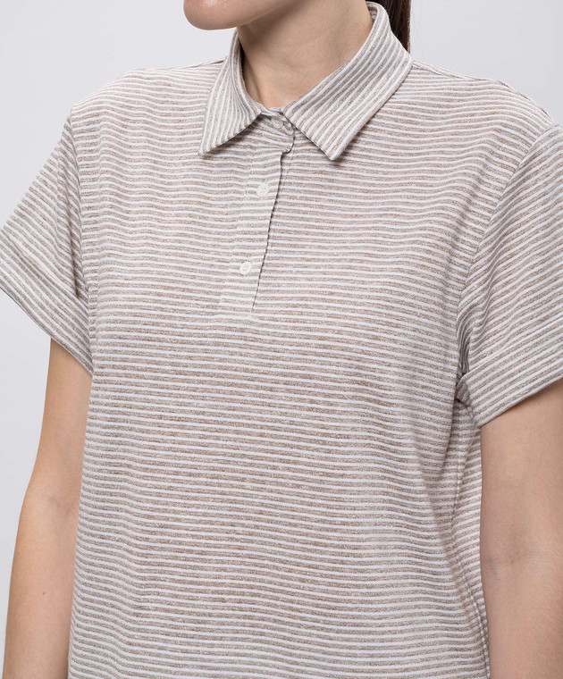 Бежевое поло в полоску с люрексом