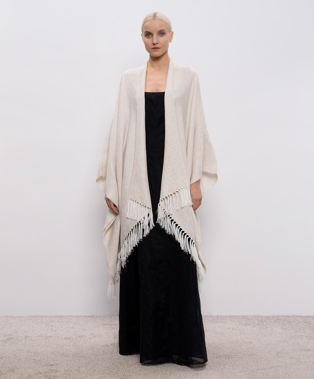 Бежевое пончо с льном