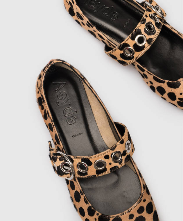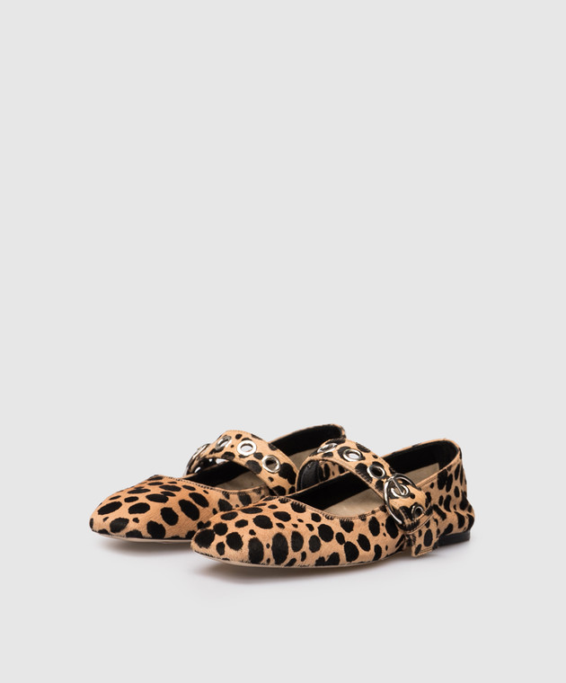 Бежевые балетки Uma из кожи с ворсом в анималистичный принт