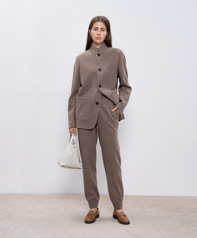 Бежевые брюки джогеры из шерсти