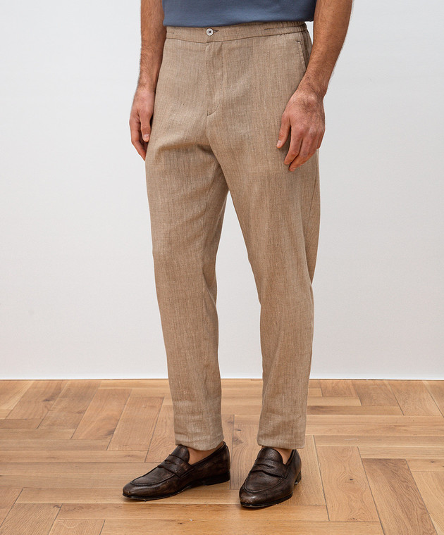 Бежевые брюки из кашемира и льна