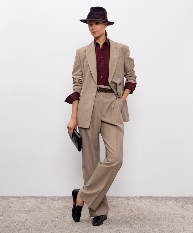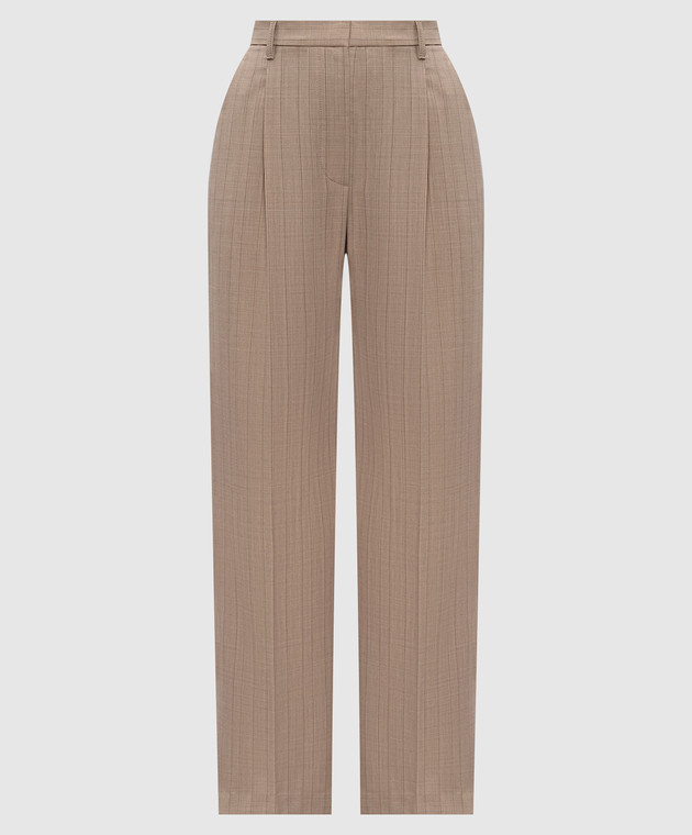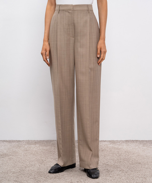Бежевые брюки из шерсти в полоску