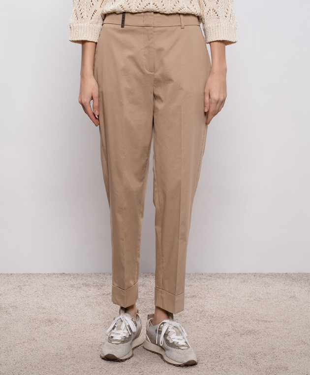 Бежевые брюки с брендовым патчем