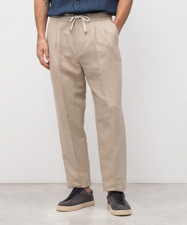 Бежевые брюки с льном