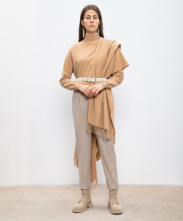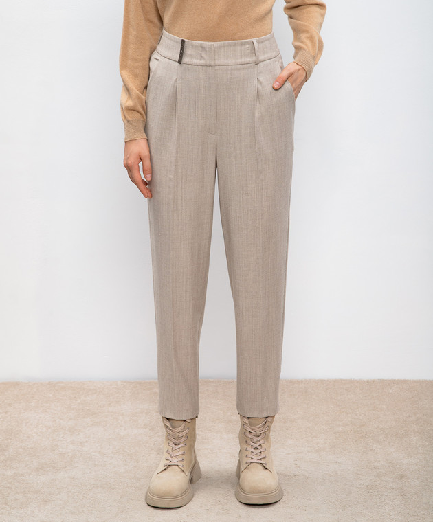 Бежевые брюки с шерстью с цепочкой мониль