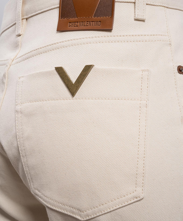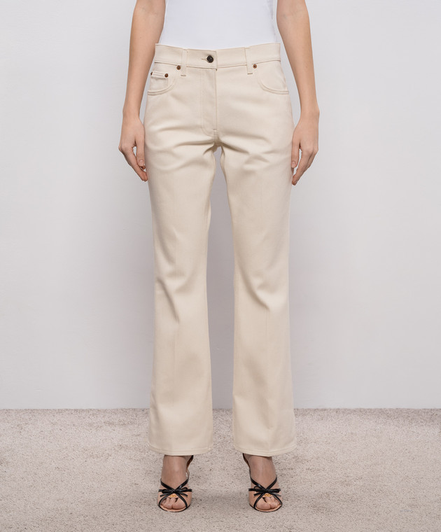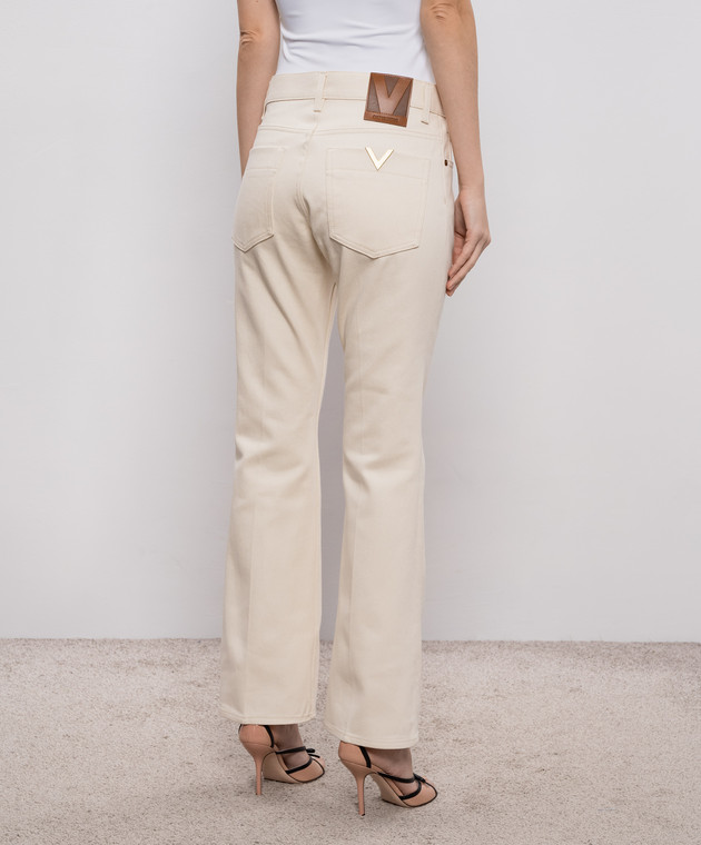 Бежевые джинсы клеш с патчем логотипа