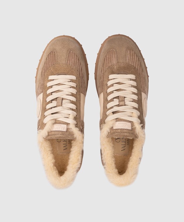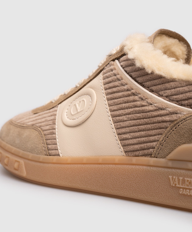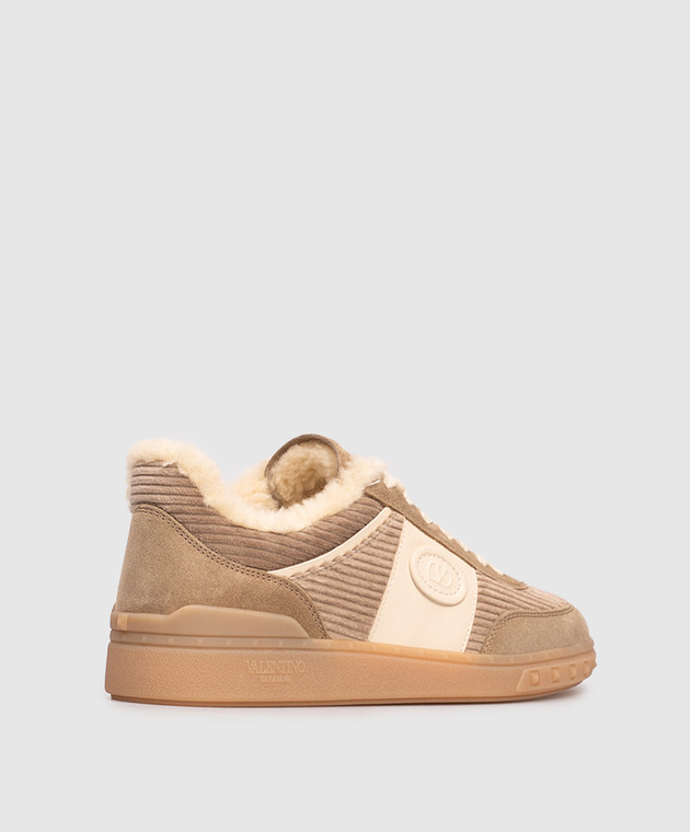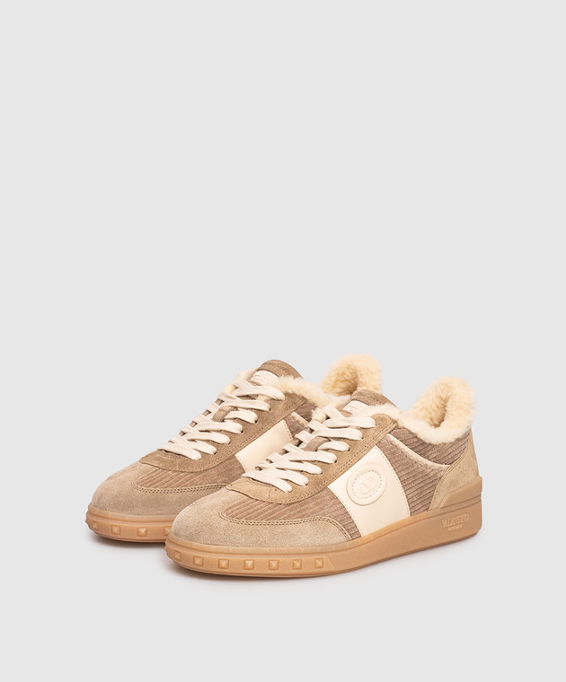 Бежевые комбинированные кроссовки на меху