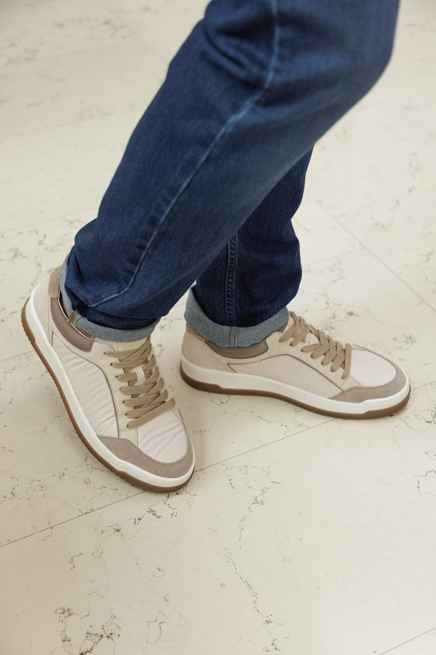 Бежевые комбинированные кроссовки с логотипом
