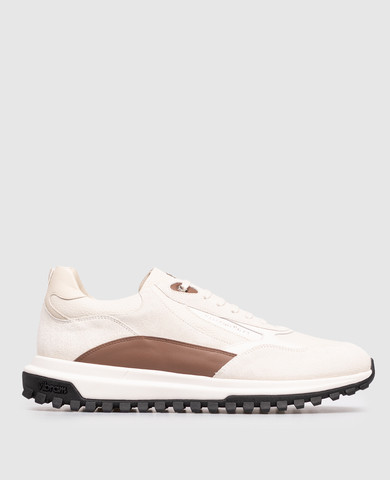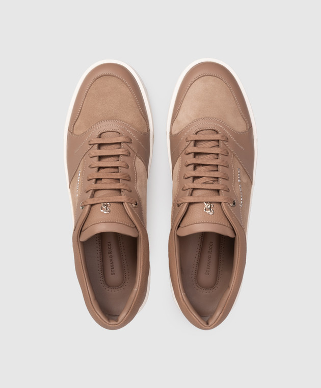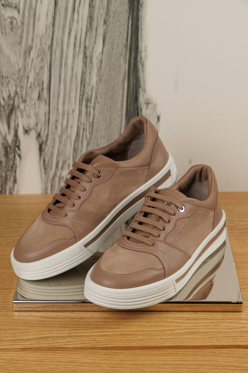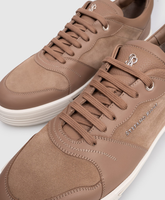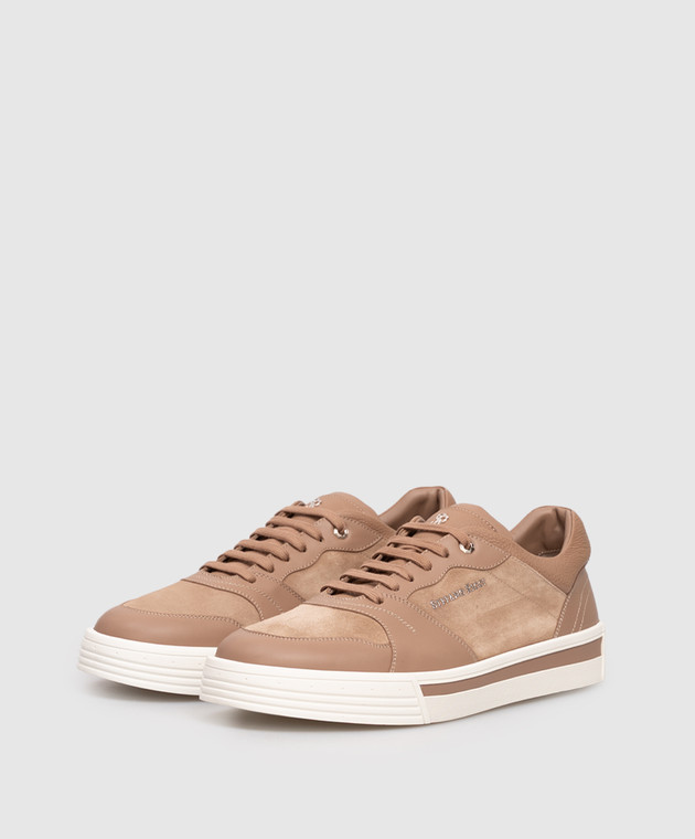 Бежевые кожаные кроссовки с логотипом