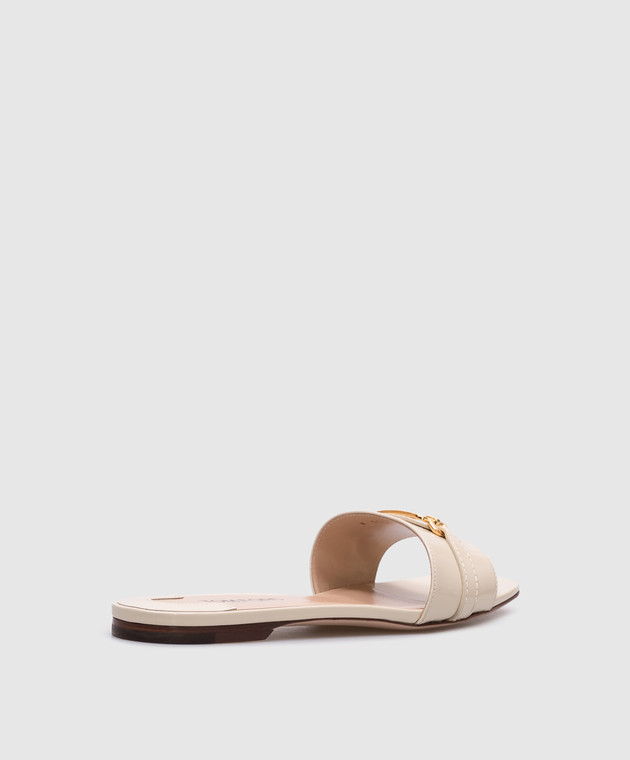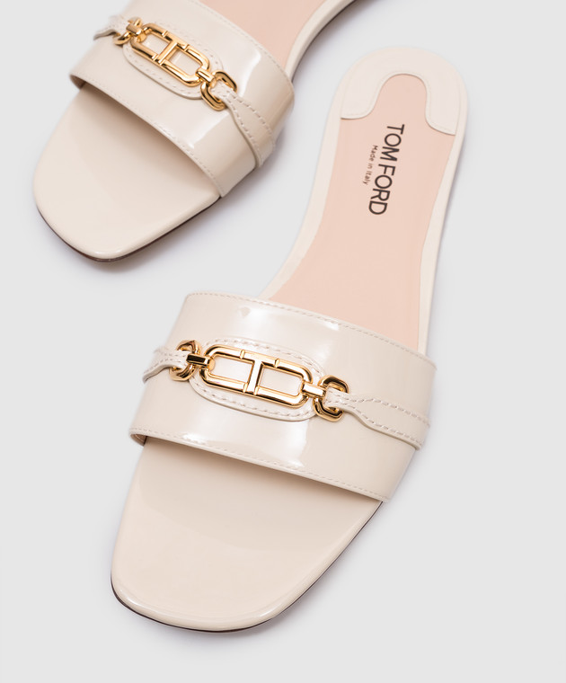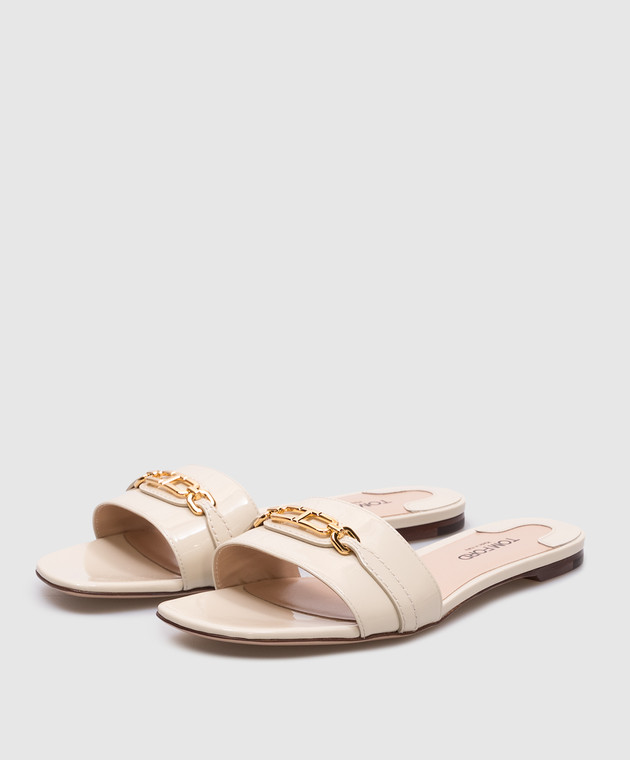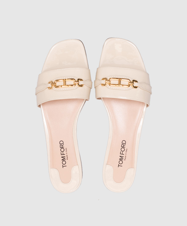 Бежевые кожаные лакированные шлепанцы