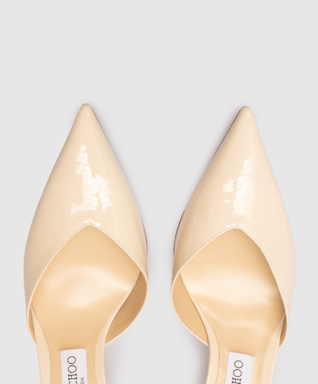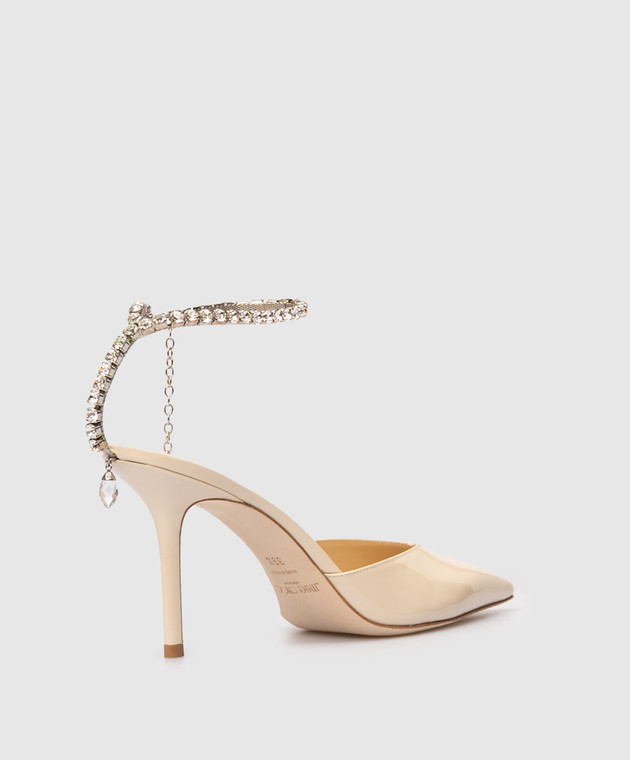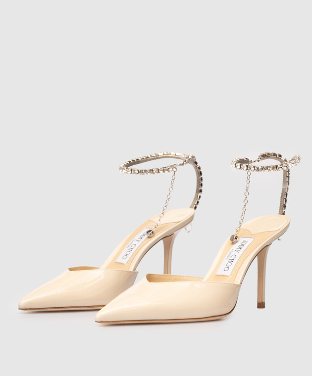 Бежевые кожаные лакированные слингбеки SAEDA с кристаллами