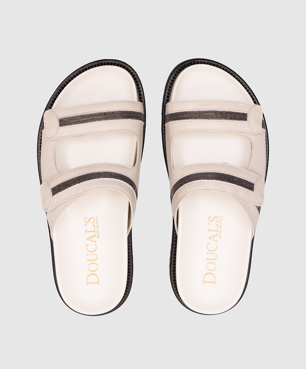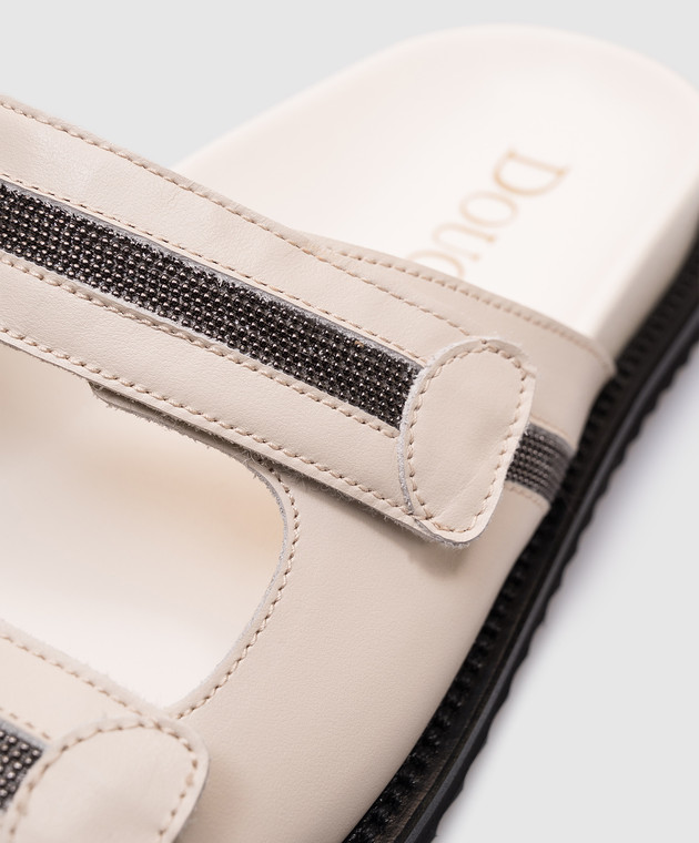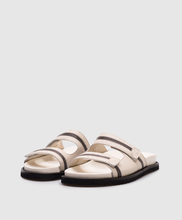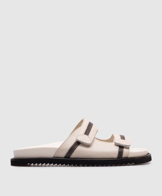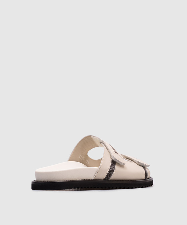 Бежевые кожаные шлепанцы с цепочкой мониль
