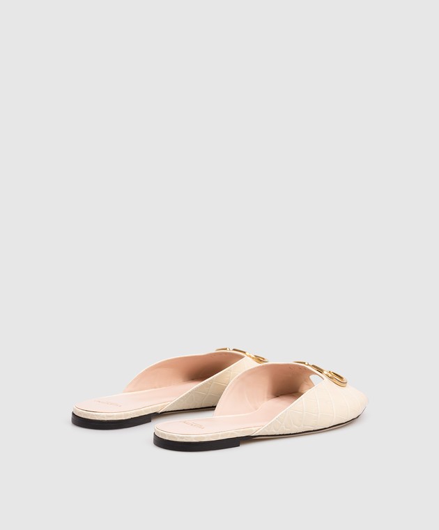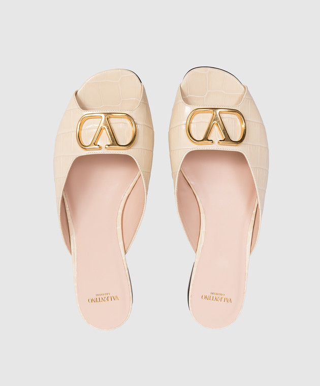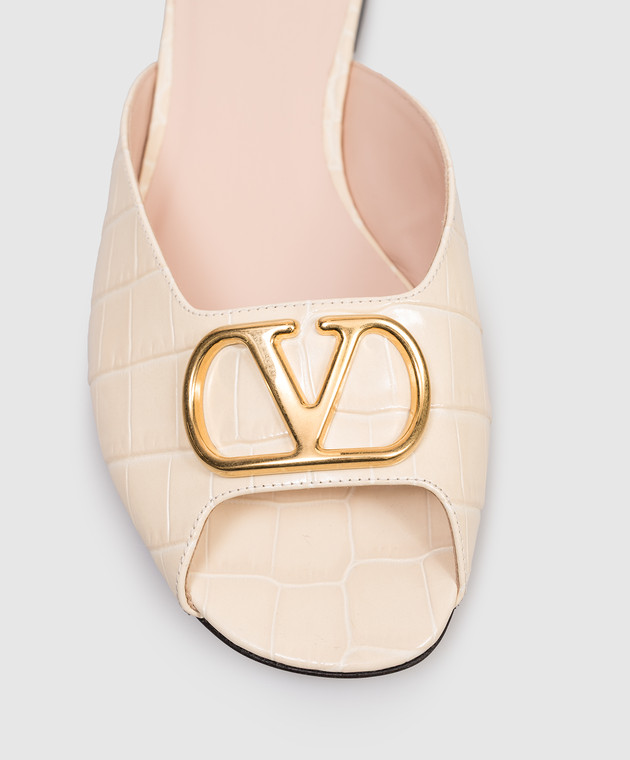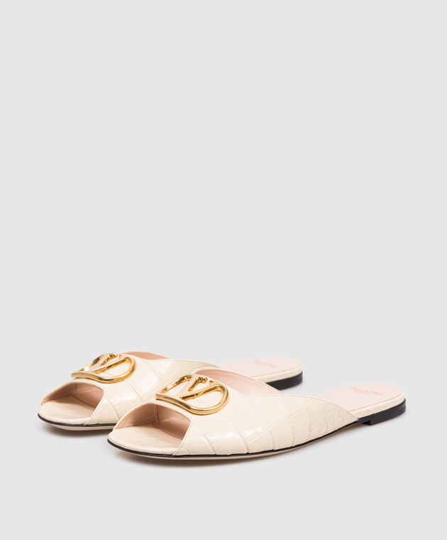 Valentino Бежевые кожаные шлепанцы с тиснением под кожу крокодила 8W0S0PI7LUR
