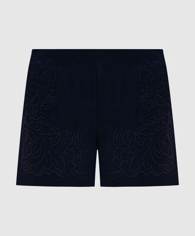 Бежевые шорты с леном с вышивкой бродеры