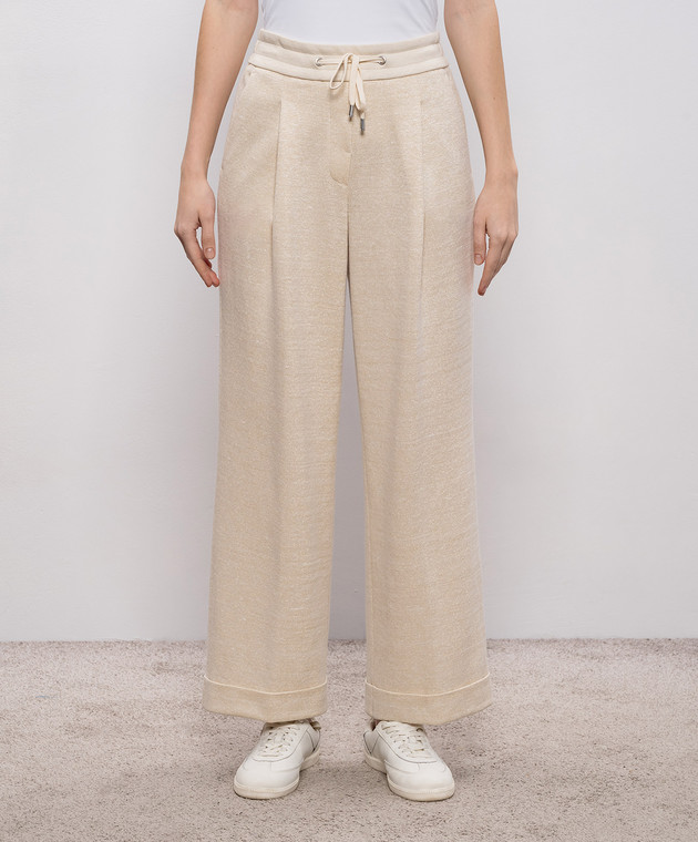 Бежевые спортивные брюки с люрексом