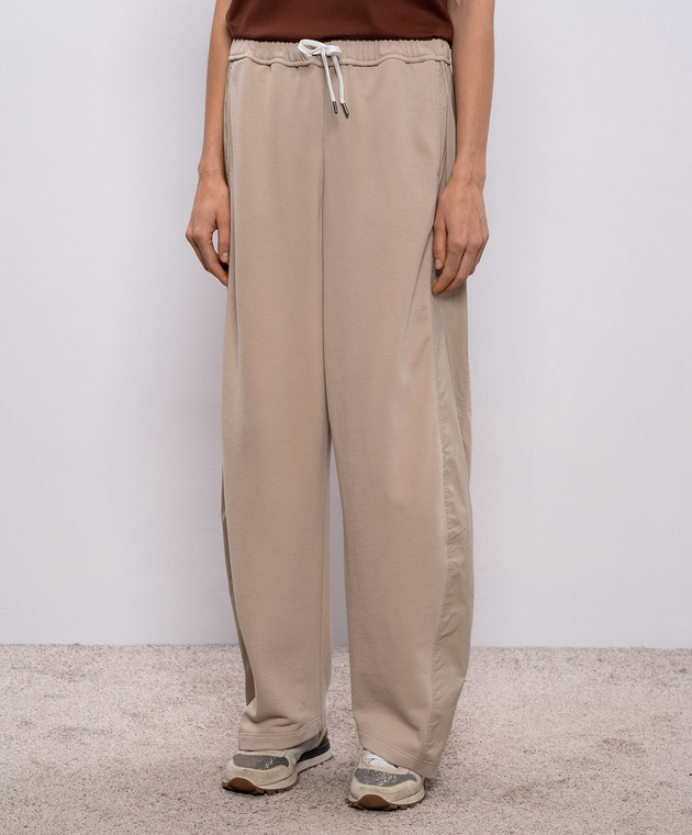 Бежевые спортивные штаны с лампасами