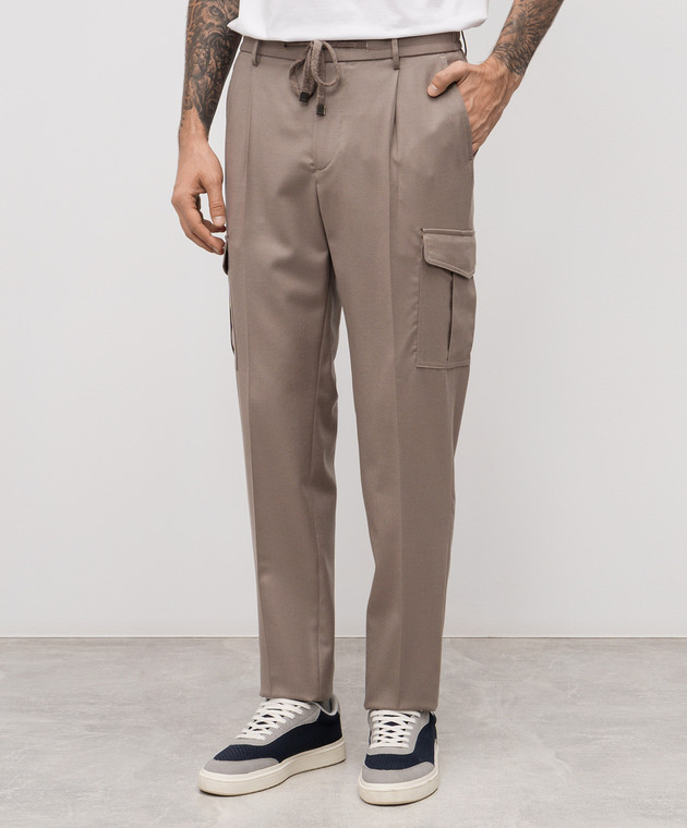 Бежевые штаны карго из шерсти