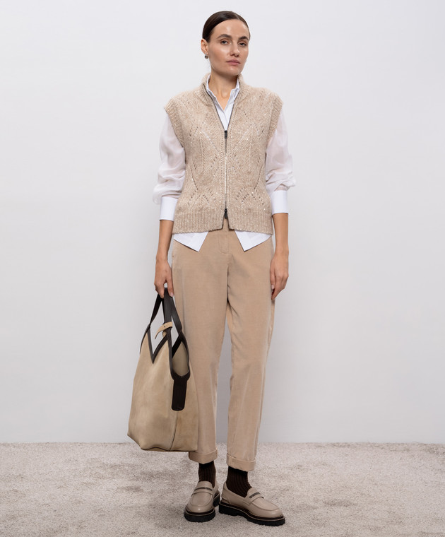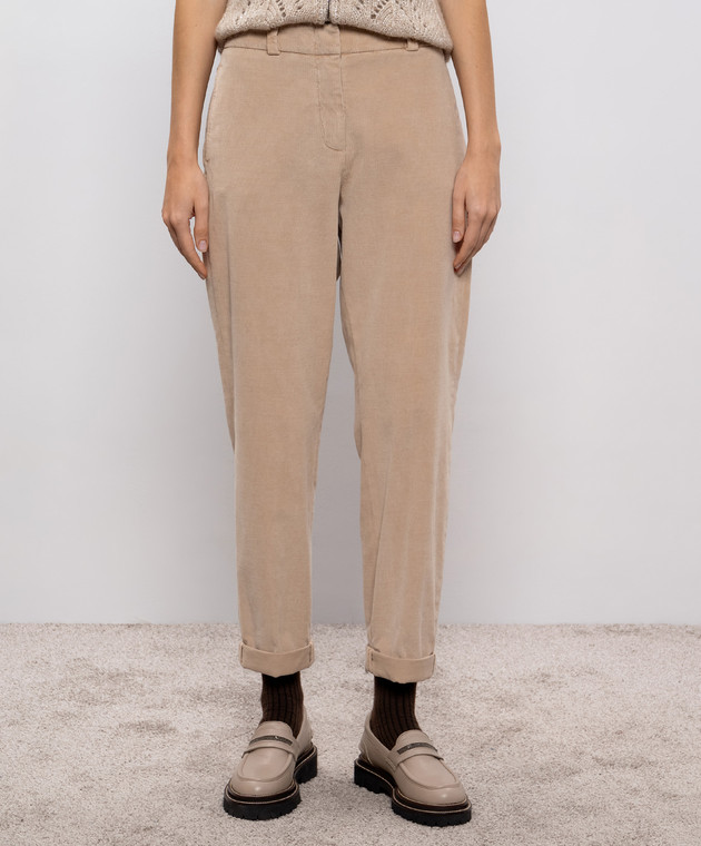 Бежевые вельветовые брюки с отворотами