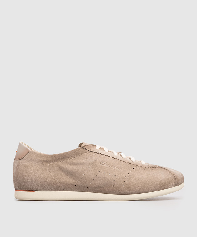 Бежевые замшевые кроссовки с перфорацией
