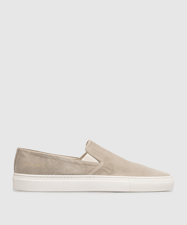 Бежевые замшевые слипоны