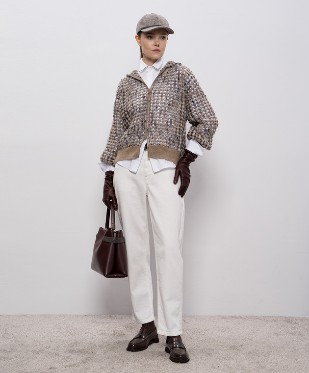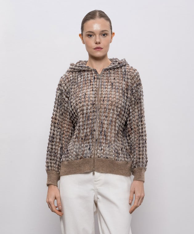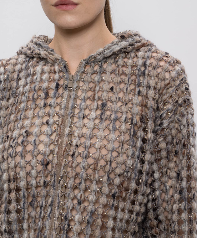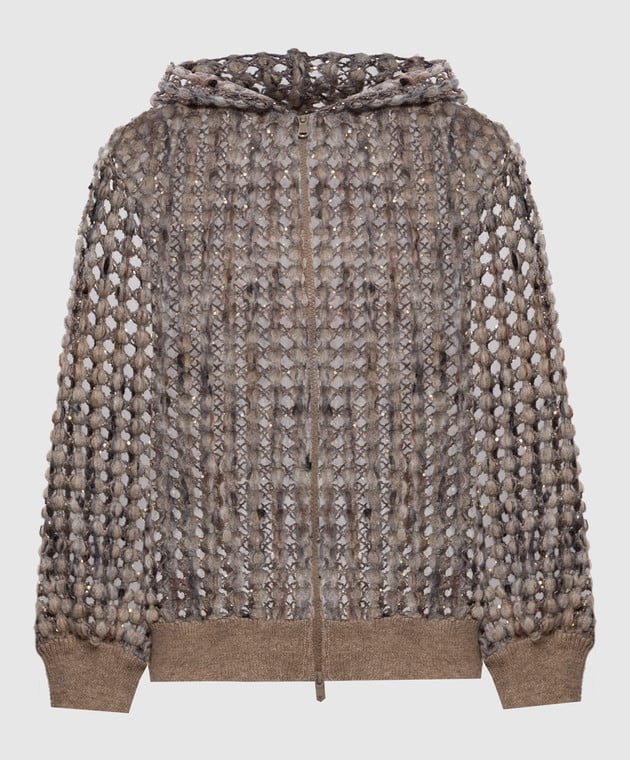 Бежевый ажурный кардиган с шерстью и кашемиром