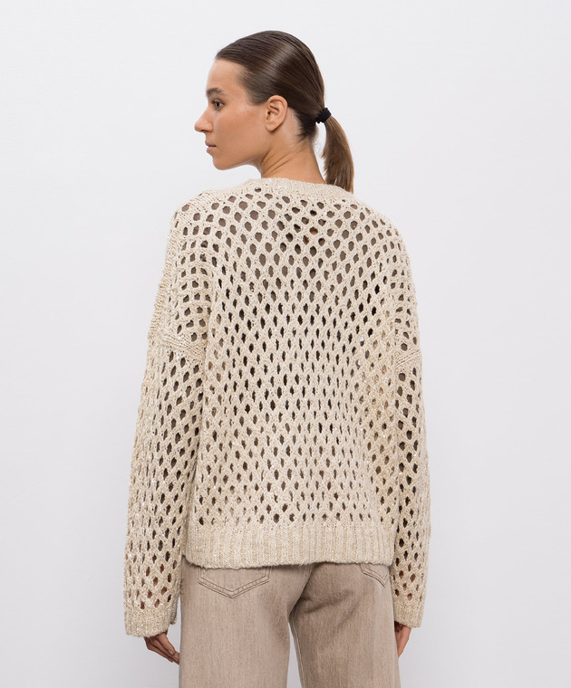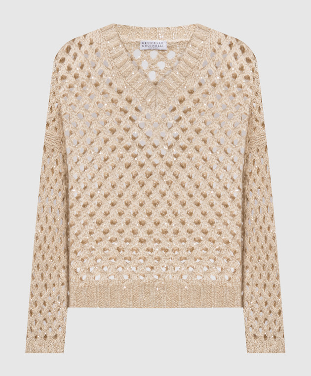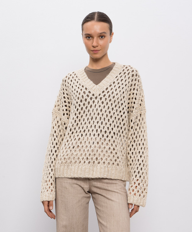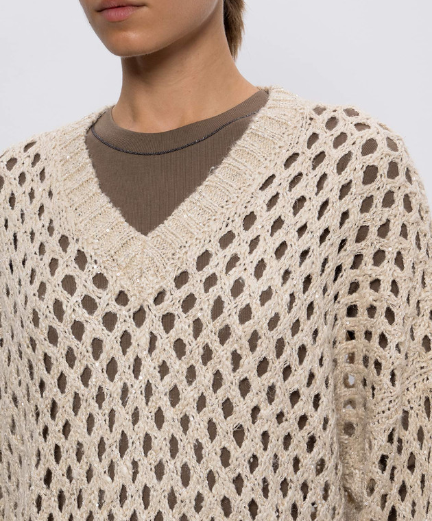 Бежевый ажурный свитер с пайетками