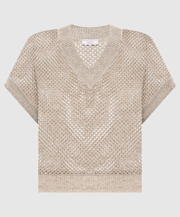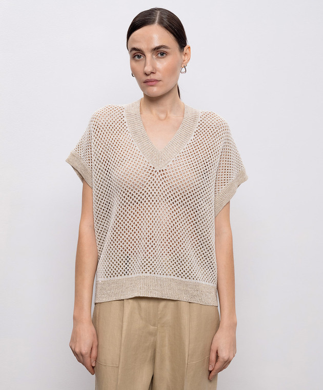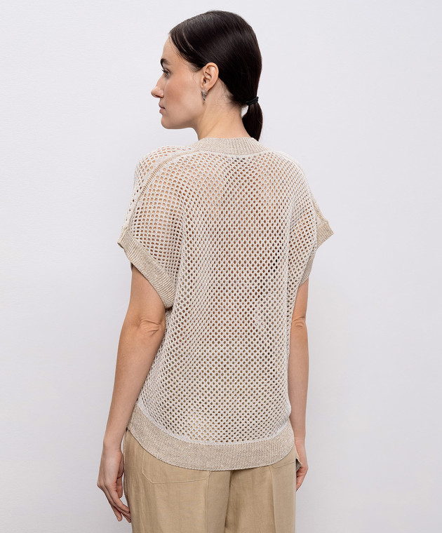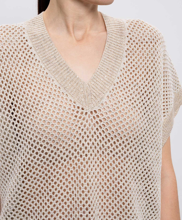 Бежевый ажурный жилет с леном с пайетками