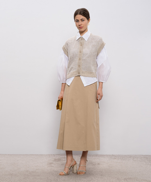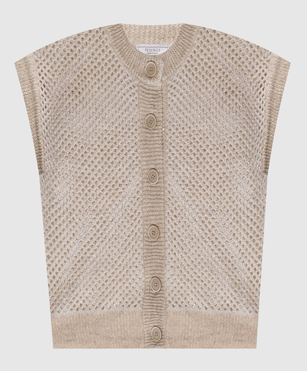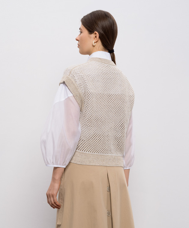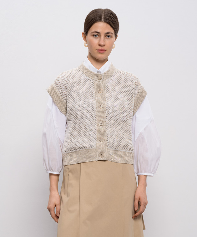 Бежевый ажурный жилет с льном