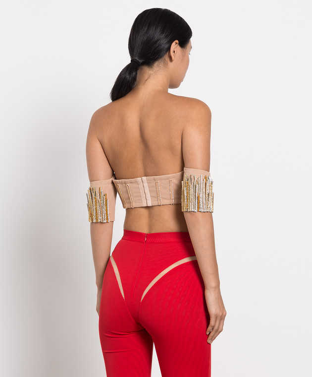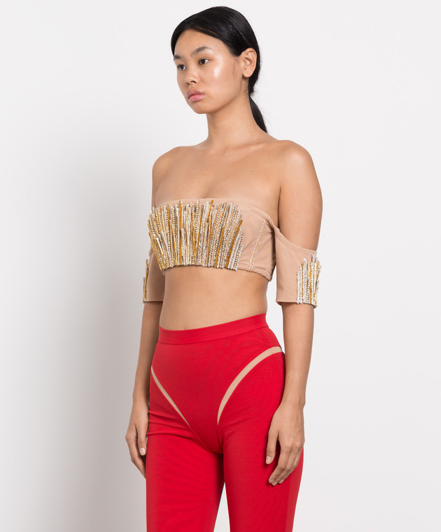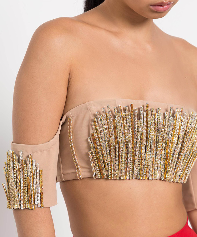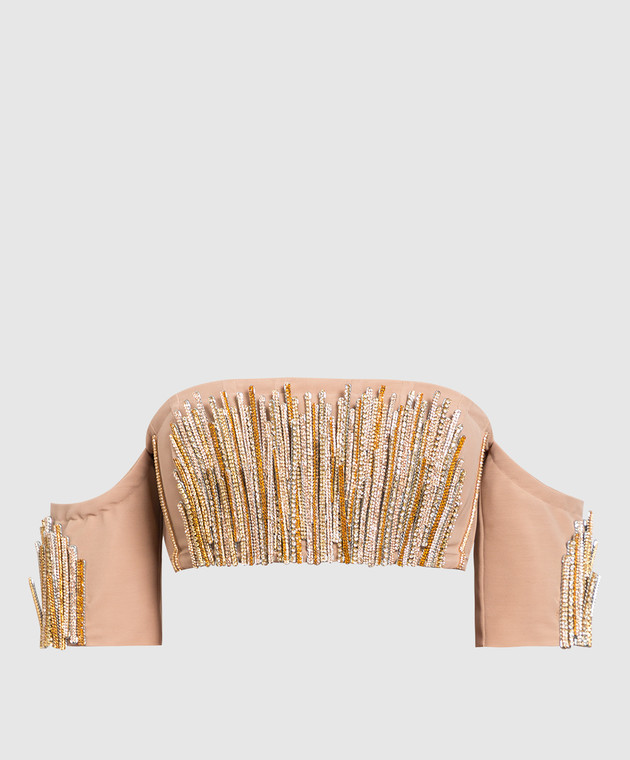Бежевый бра с с ручной вышивкой кристаллами