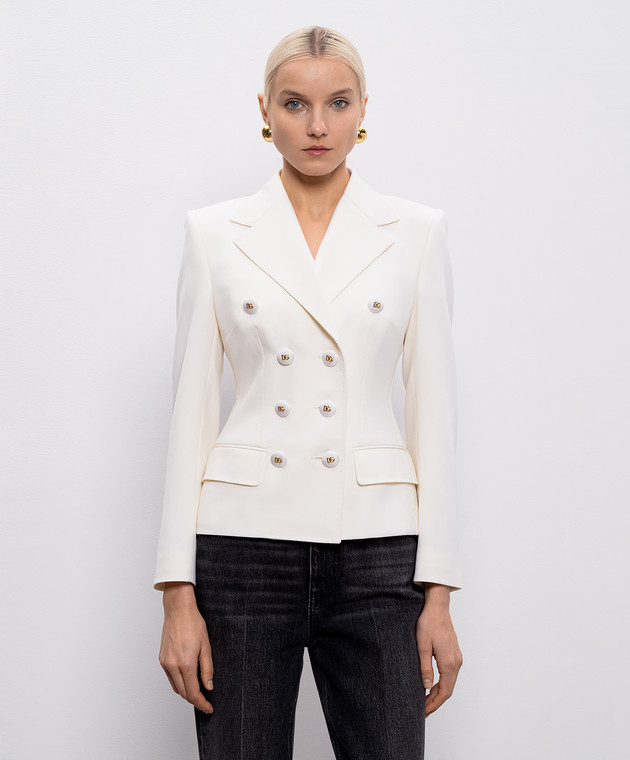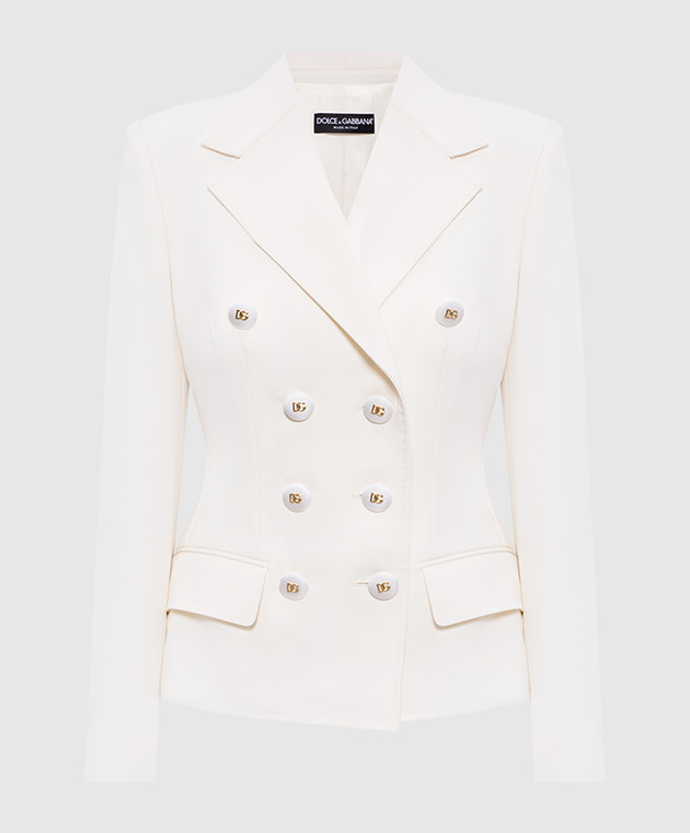 Бежевый двубортный жакет из шерсти