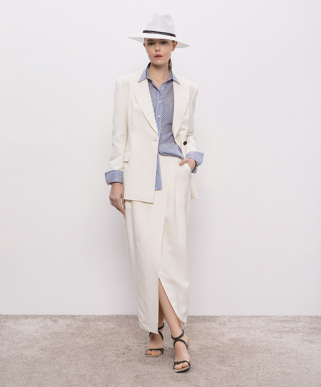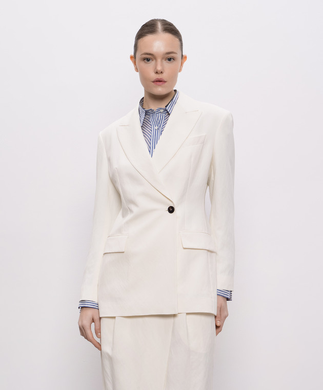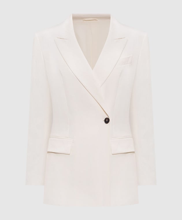 Бежевый двубортный жакет с цепочкой мониль