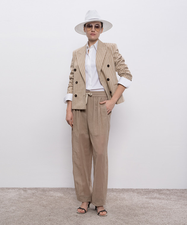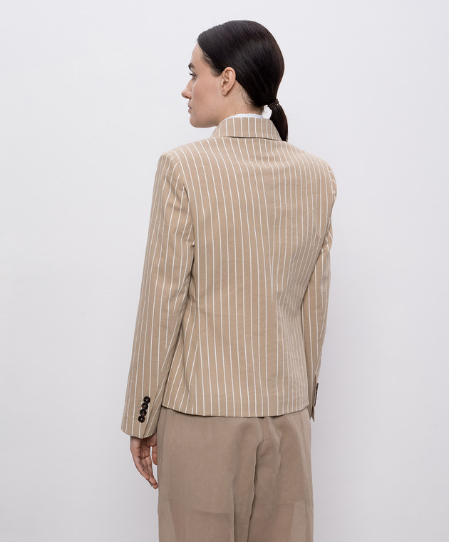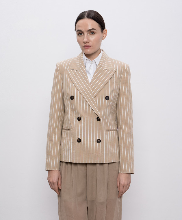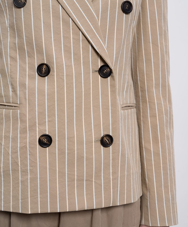 Бежевый двубортный жакет с шелком в полоску