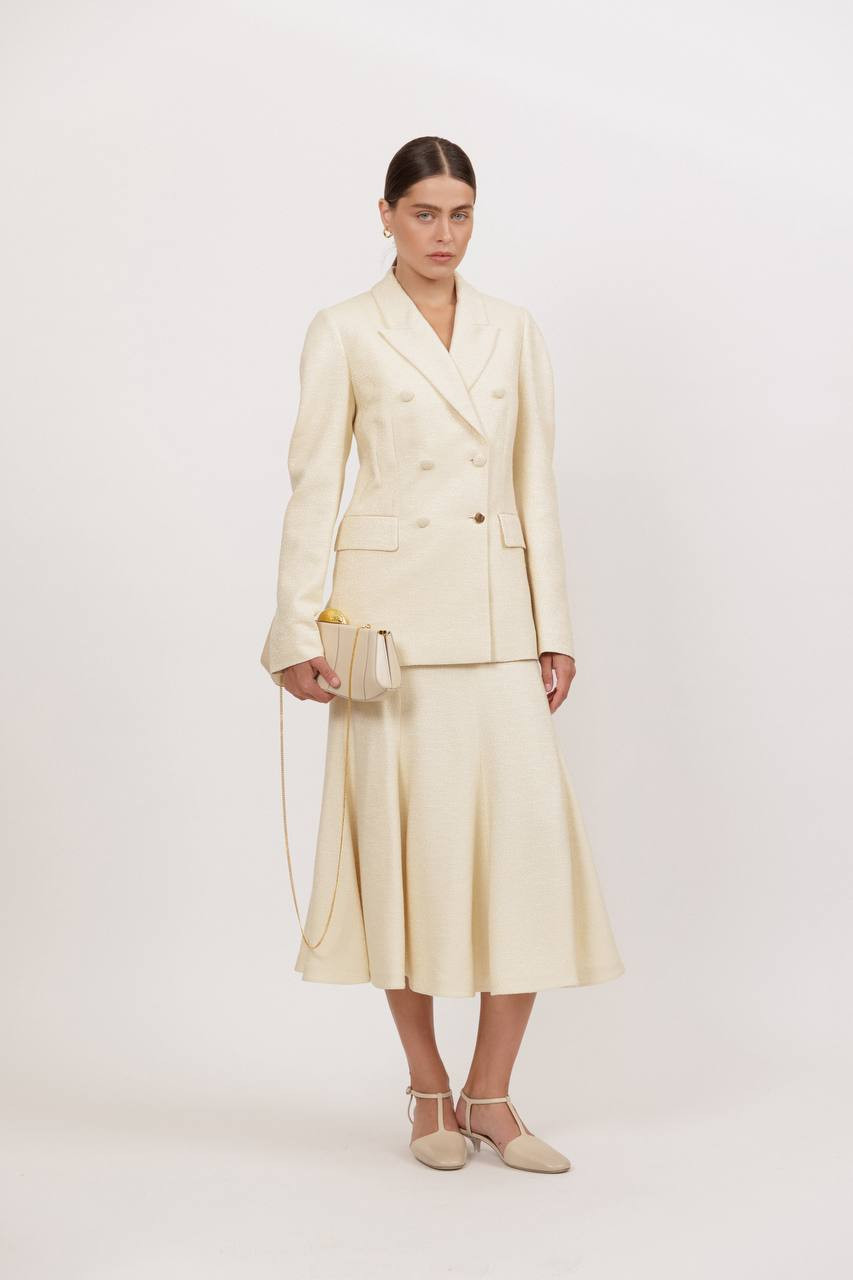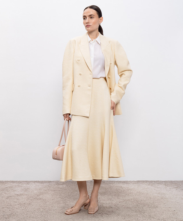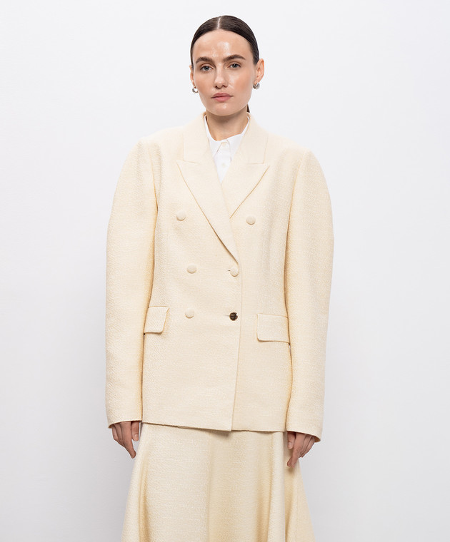 Бежевый двубортный жакет Sedna из шелка