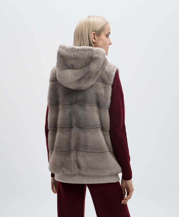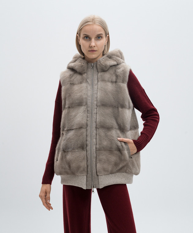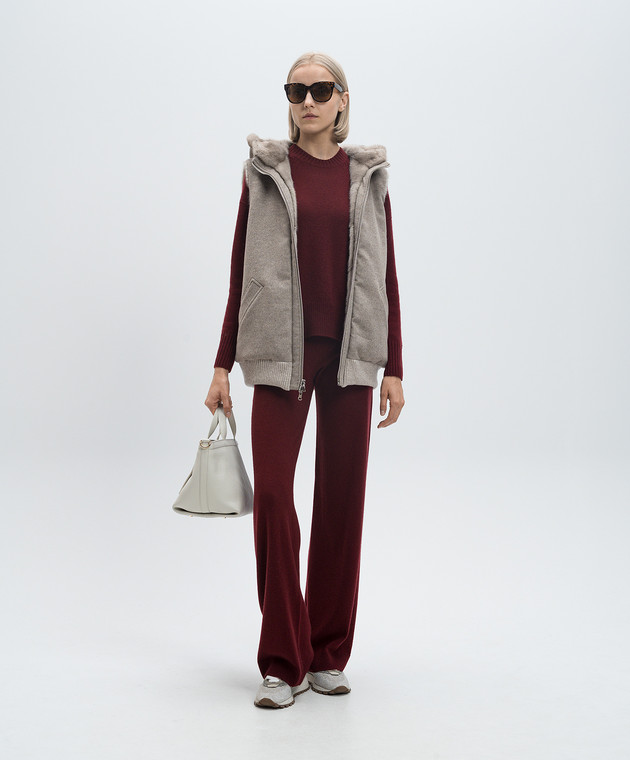 Бежевый двусторонний жилет из шерсти и кашемира с мехом норки