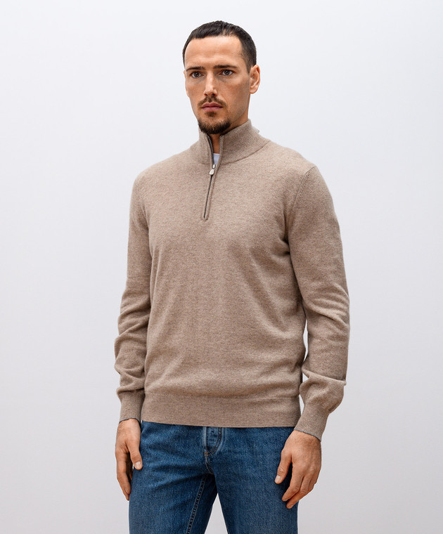 Brunello Cucinelli Бежевый меланжевый джемпер из кашемира M2200124