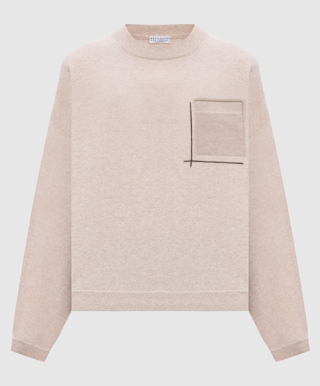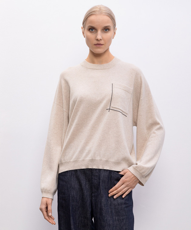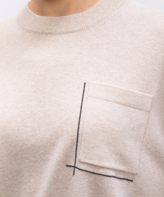 Бежевый джемпер из шерсти, кашемира и шелка с цепочкой мониль