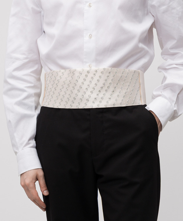 Бежевый камербанд из шелка с кристаллами