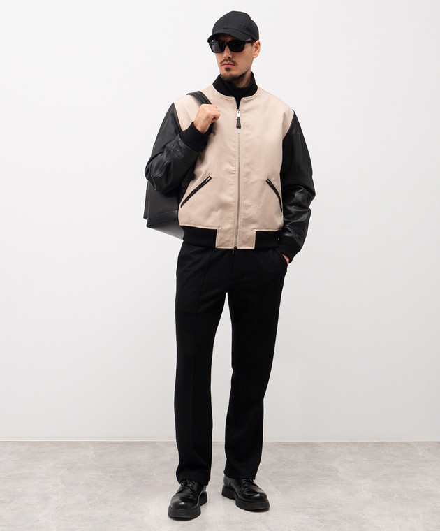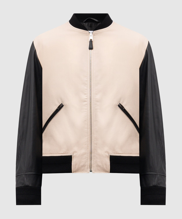 Бежевый комбинированный бомбер с логотипом