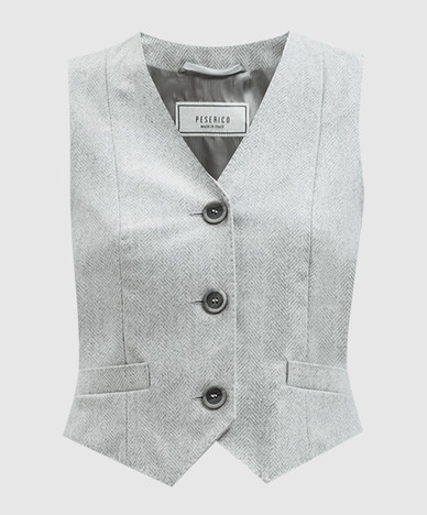 Бежевый комбинированный пуховой жилет с цепочкой мониль