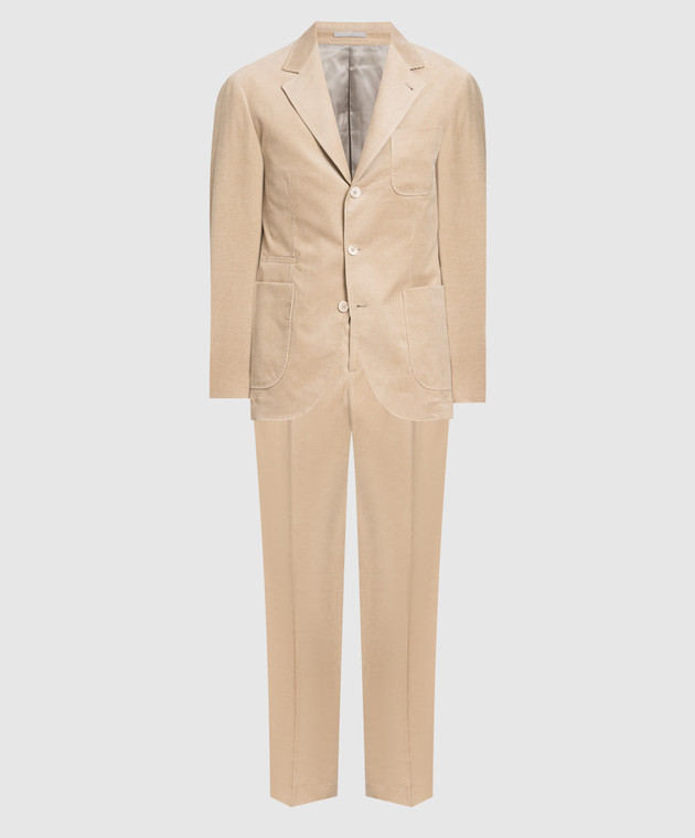 Бежевый костюм в рубчик