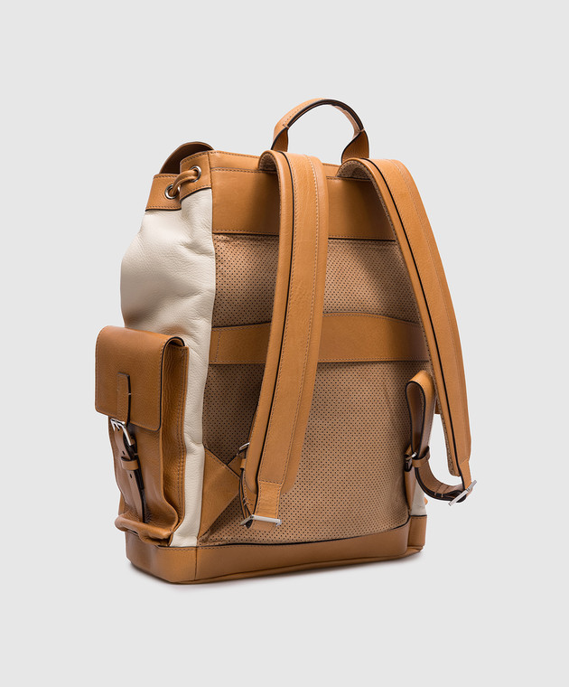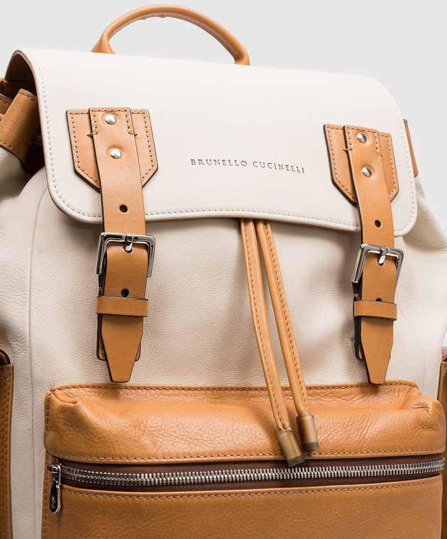 Бежевый кожаный рюкзак с логотипом