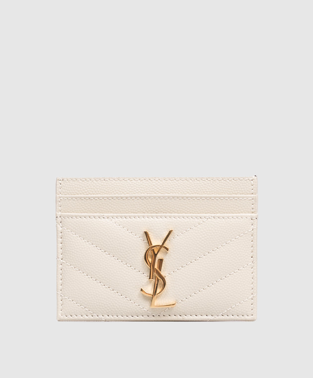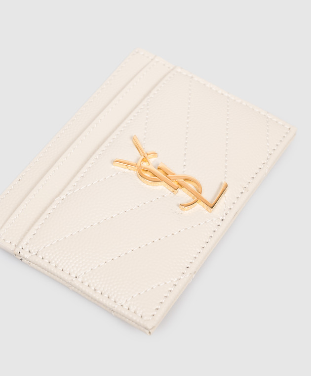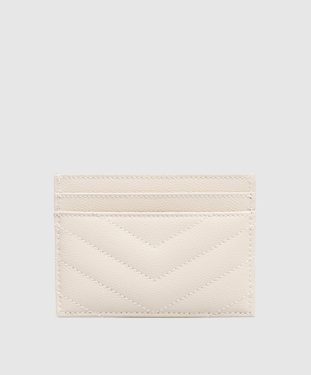 Бежевый кожаный стеганый картхолдер с монограммой Cassandre