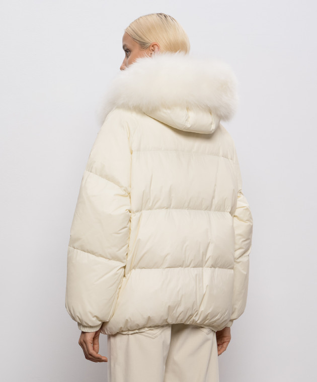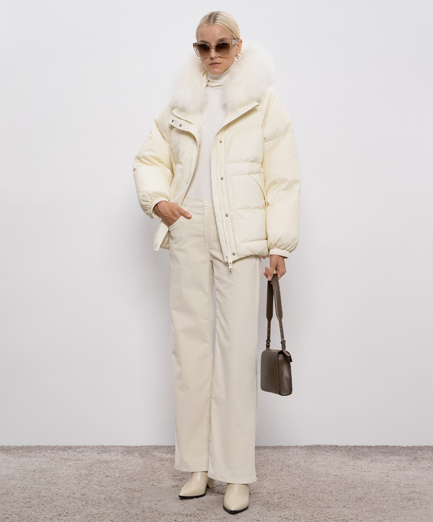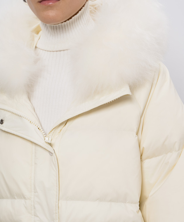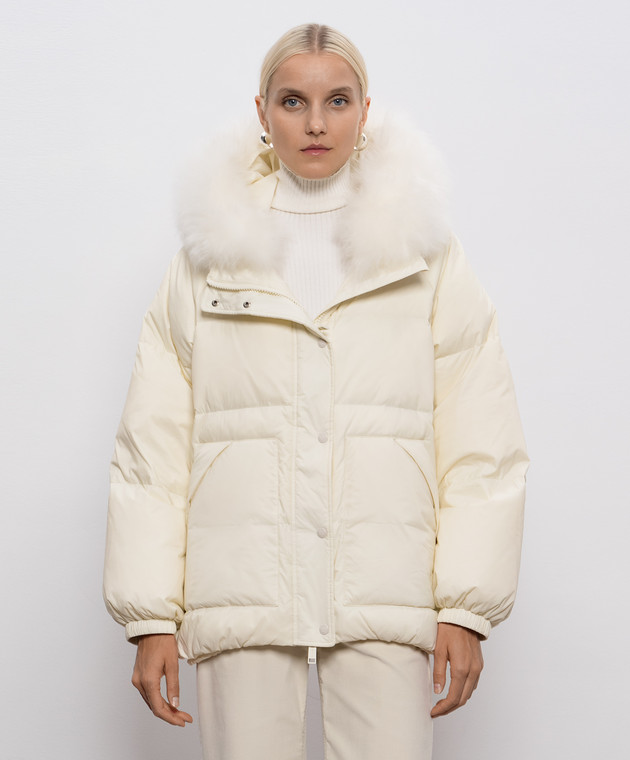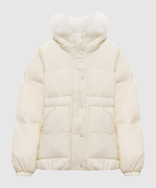 Бежевый пуховик с капюшоном