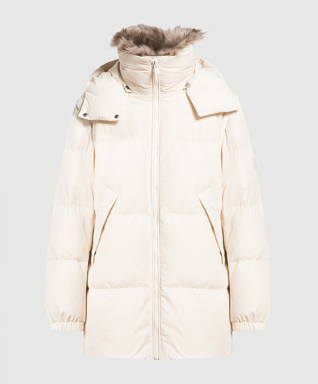 Бежевый пуховик с мехом