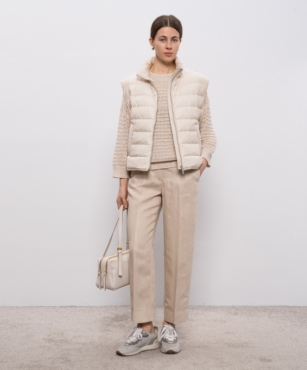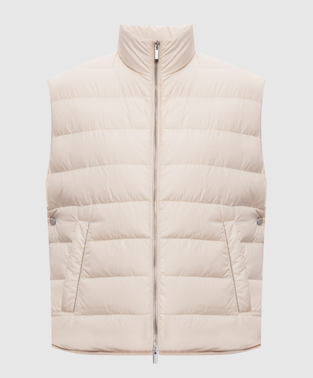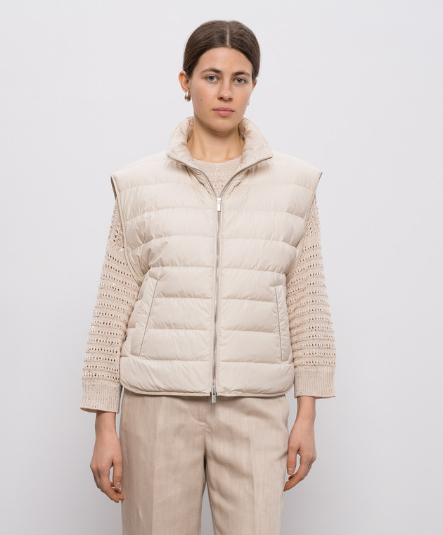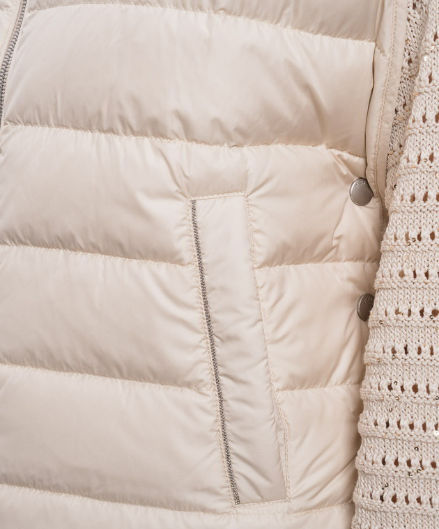 Бежевый пуховый жилет с цепочкой мониль