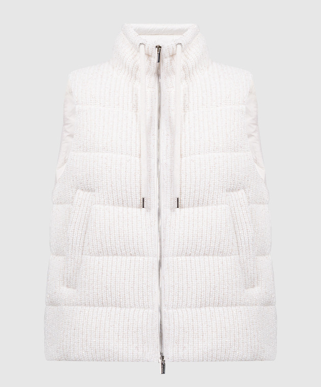 Бежевый пуховый жилет с пайетками